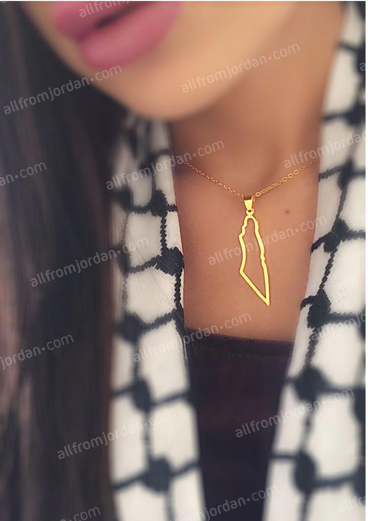 Outline of the map of Palestine necklace. Comes in gold plated or silver plated (rhodium plated). Allow 10-14 days to produce and ship. Handmade in Jordan. For product care avoid contact with perfumes or abrasive liquids. Free shipping worldwide.