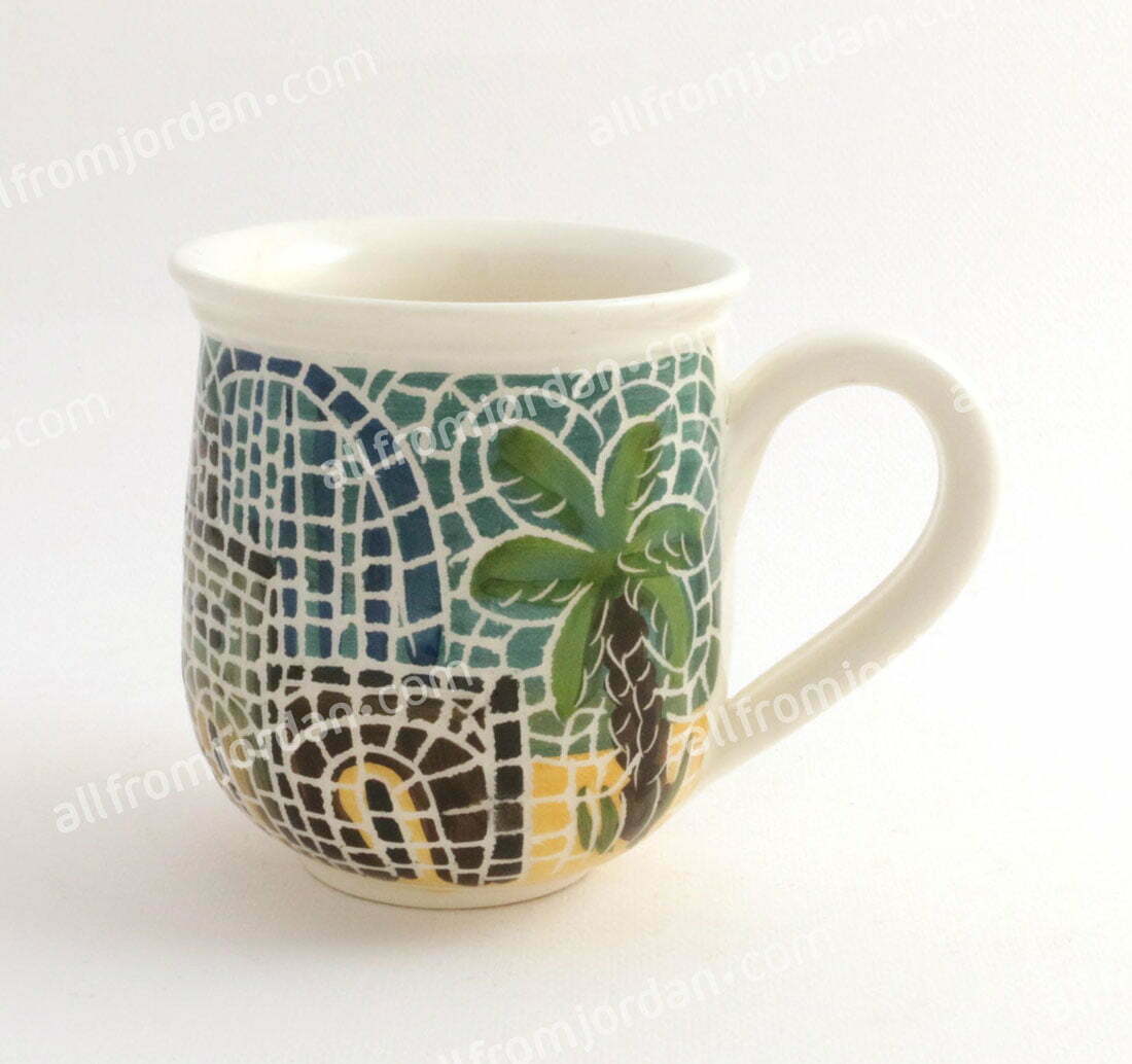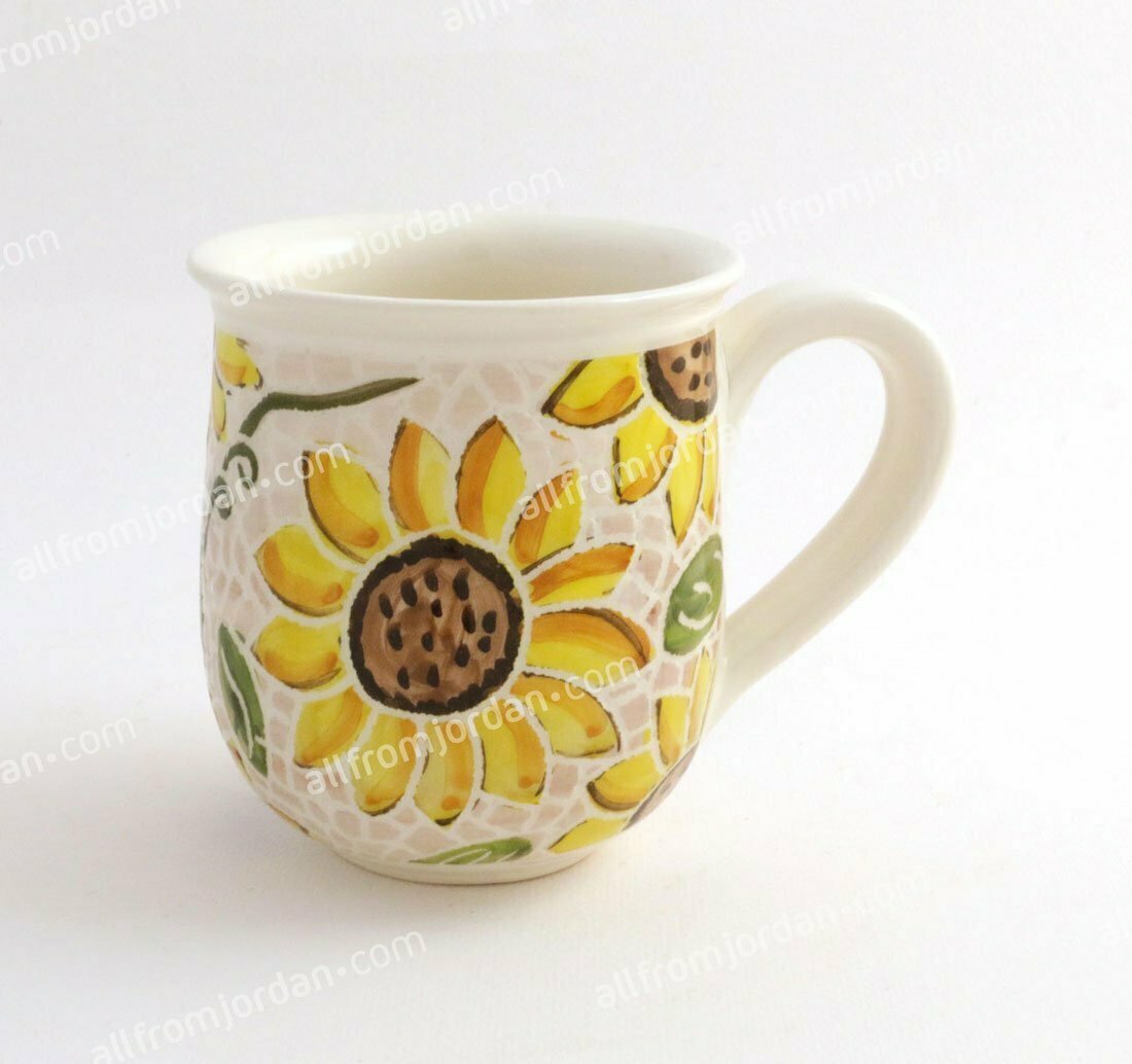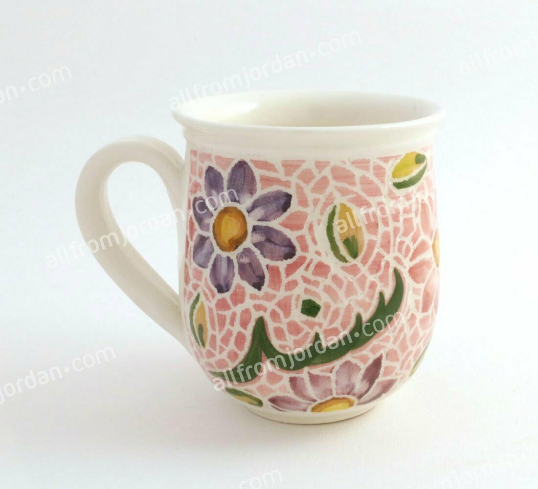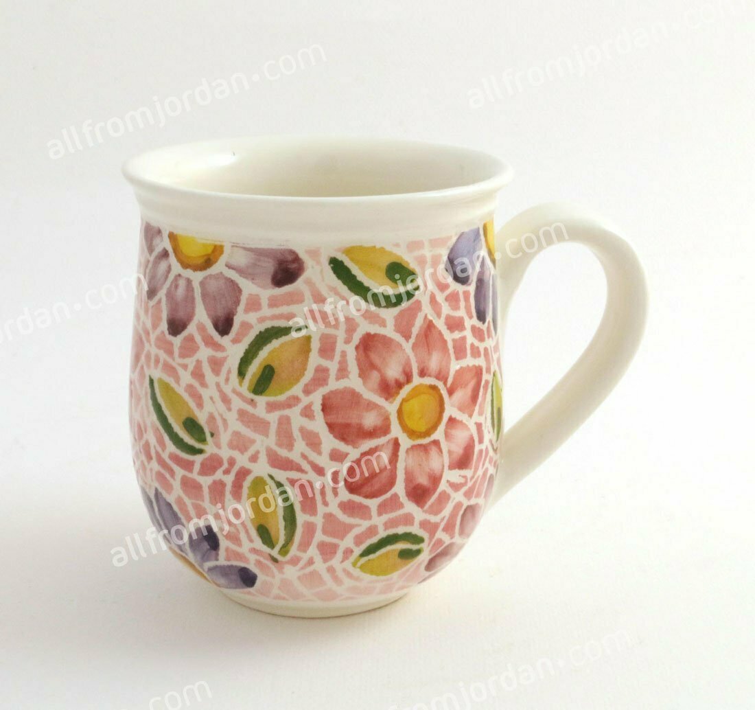Write your name on a Jordanian mug! Handmade and hand painted with a variety of themes. Available in either white or red clay base.  You can have your name written in Arabic or in Latin lettering. English names can be written in either Arabic or English (latin) letters as per your preference. Arabic names will be written in Arabic unless text field is written in English. Spelling will be exactly as submitted.