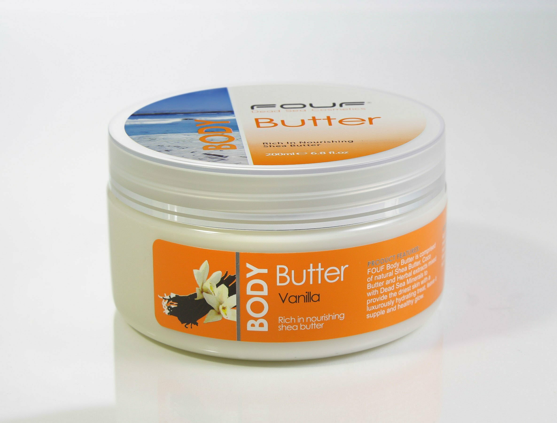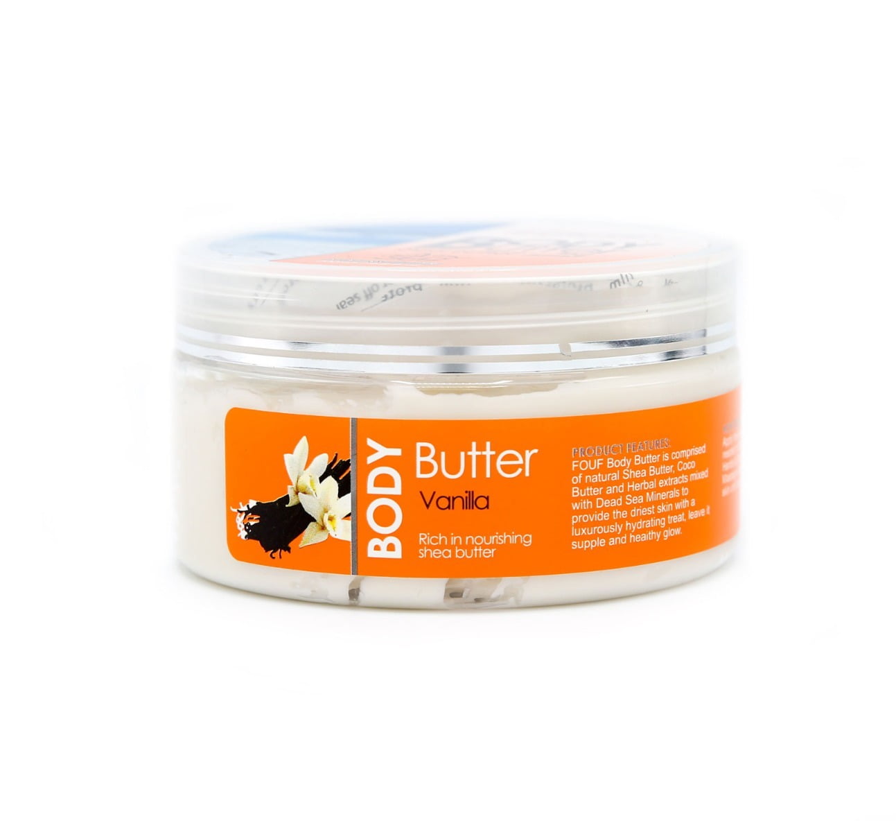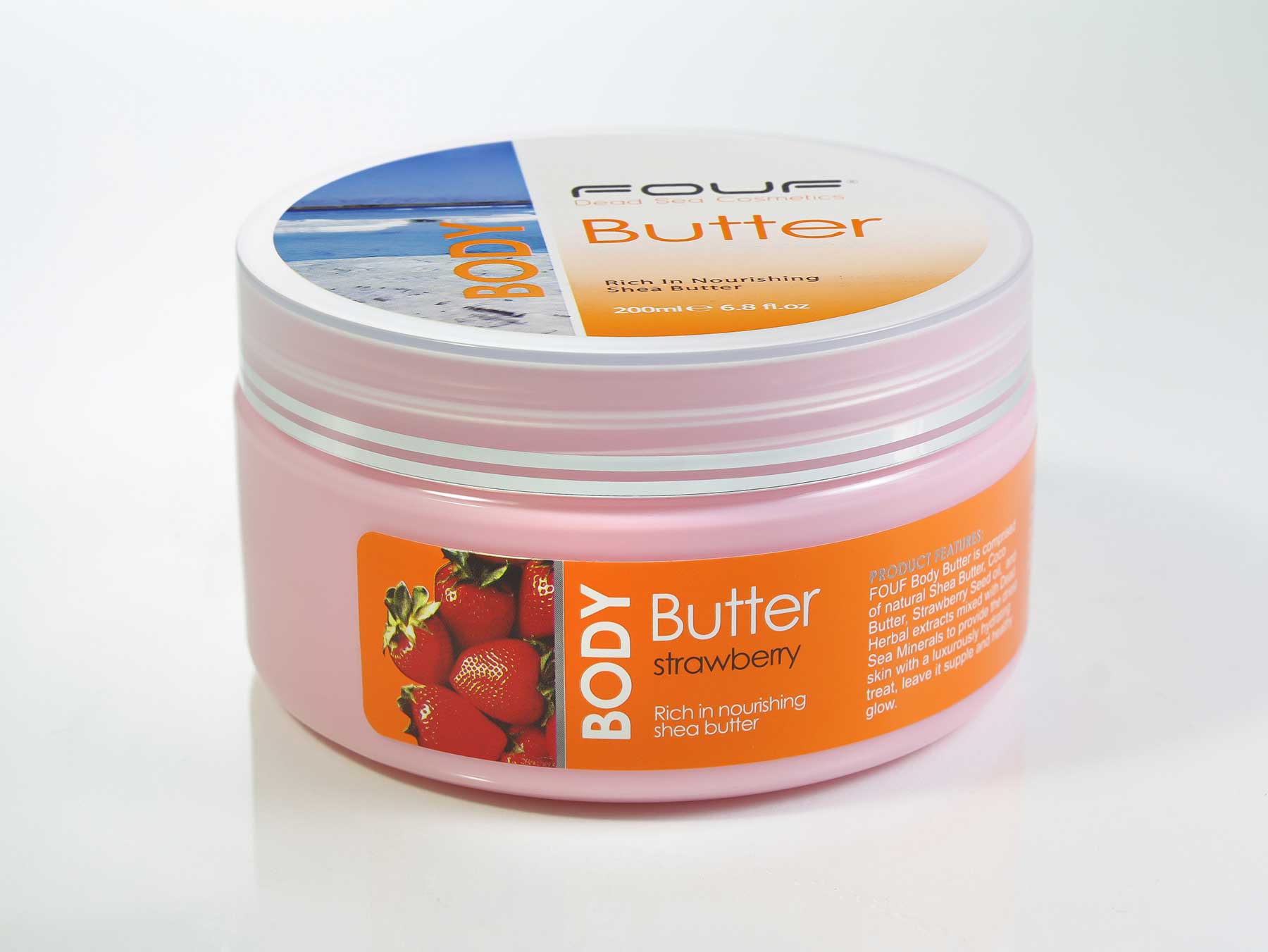 Pleasant creamy body butter that moisturizes and softens the skin while fighting signs of ageing, while adding deep nourishment and protection. Made from nature’s best moisturizers- Shea butter, Cocoa butter, Natural oils and Herbal extracts, that will leave your skin feeling silky and moisturized all-day long. For normal to dry skin and ideally after bathing or showering. A premium Dead Sea cosmetics product by FOUF