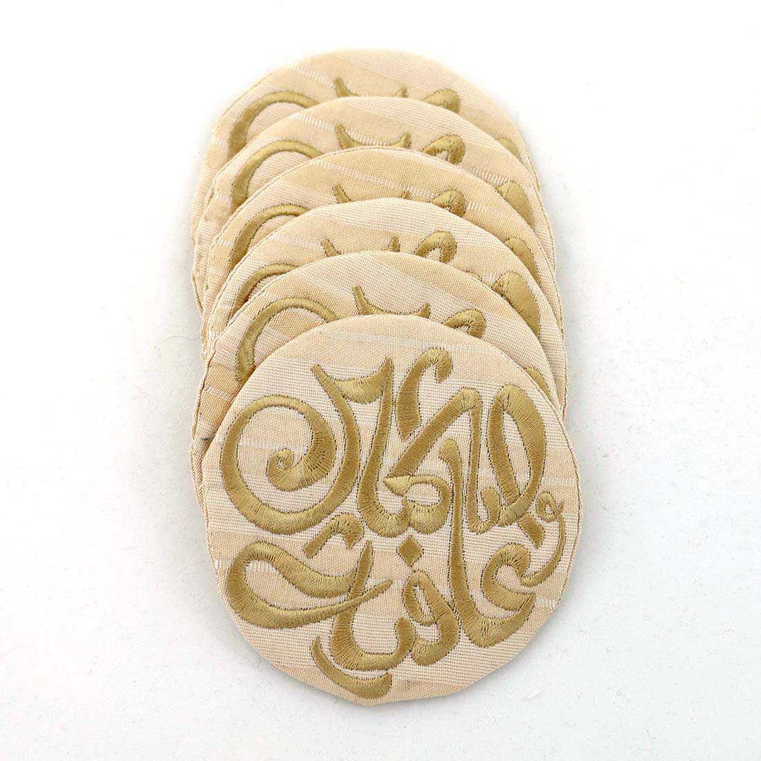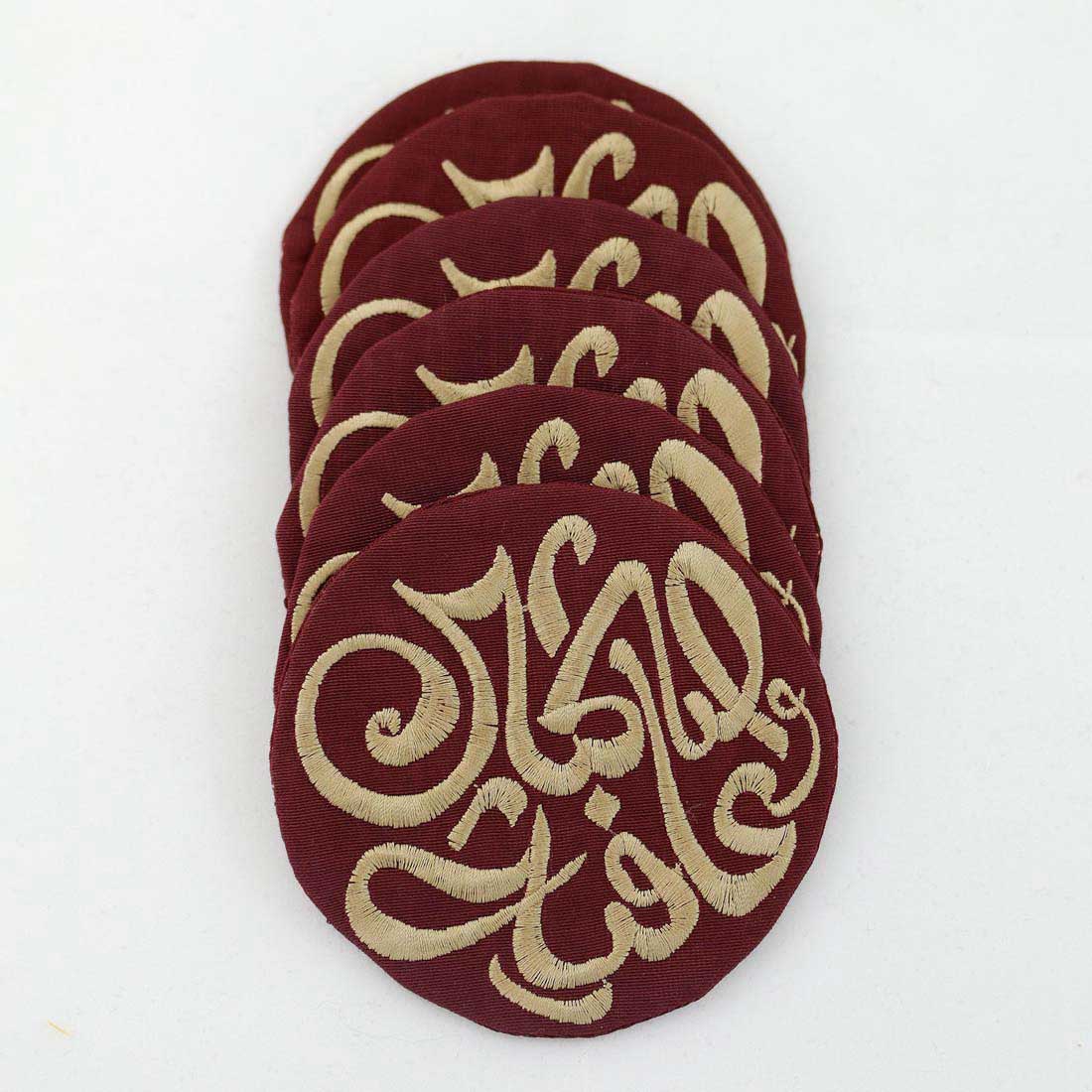 Round coasters embroidered with ” صحتين وعافية ” (Bon Apetit) in Arabic | Set of 4 Coasters