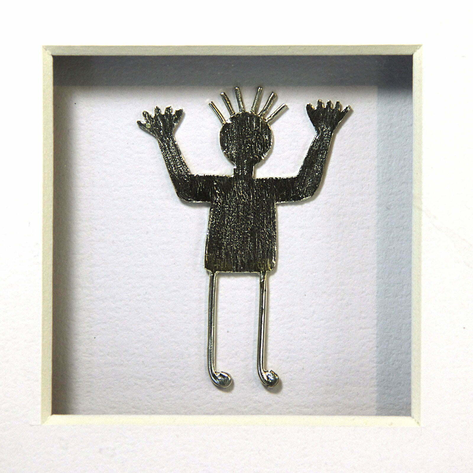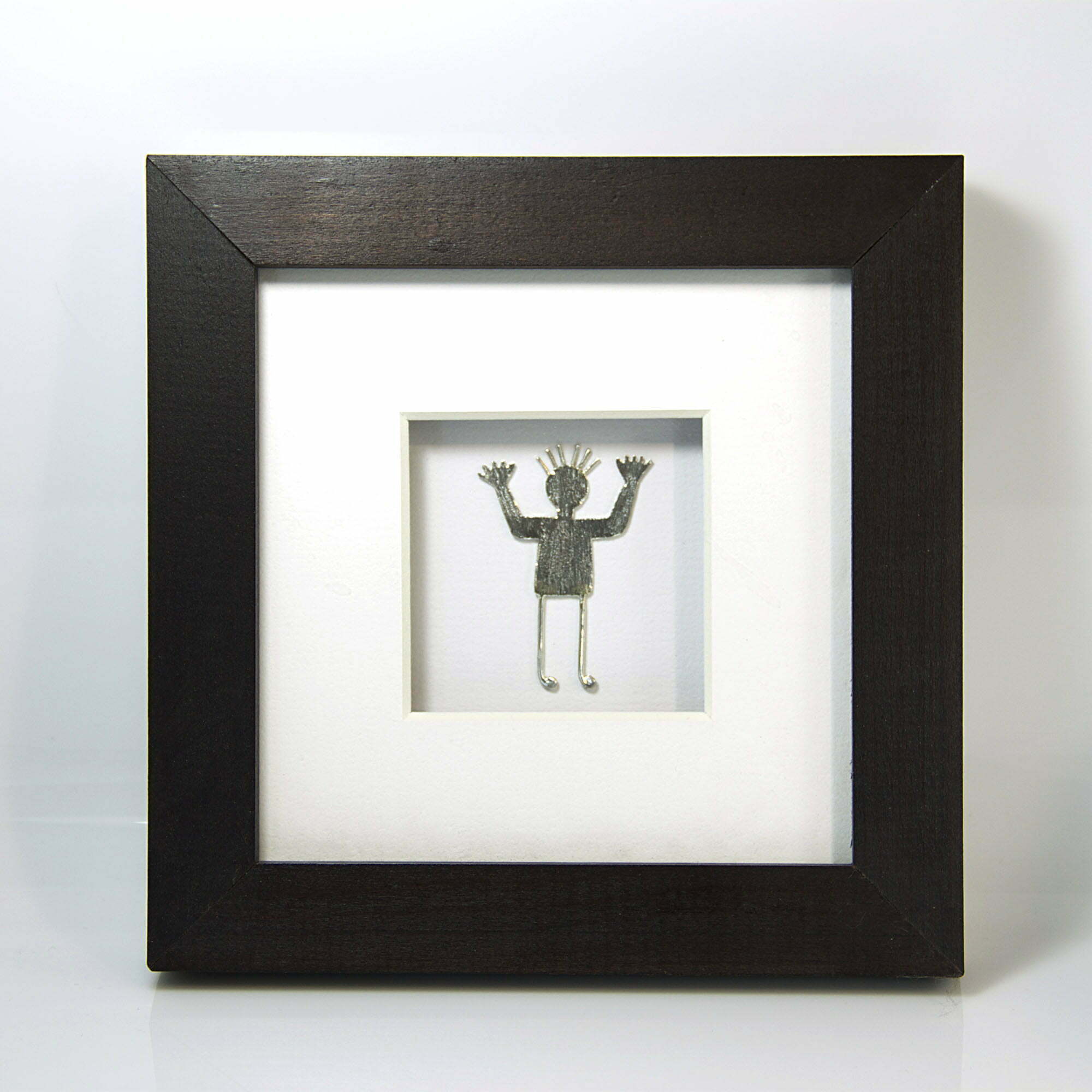 The ancient Thamudic tribes who dwelled in Jordanian deserts thousands of years ago made very interesting carvings (petroglyphs) on the rocks of Wadi Rum depicting wildlife, hunting scenes and other aspects of their life. These primitive figures and drawings became an inspiration to local artists who used them to create unique works of art and motifs that can be seen across the board in Wild Jordan’s product lines. This “Desert Man” iconic figure is hand made in silver and framed elegantly in a wooden frame.