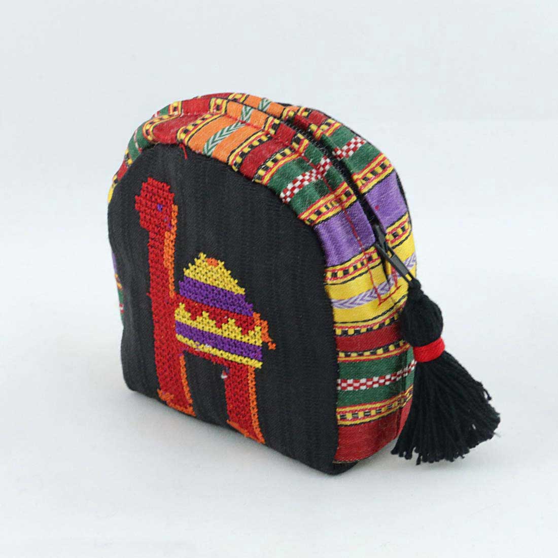 Handmade cloth purse embroidered with camel motif. Comes in different colors.